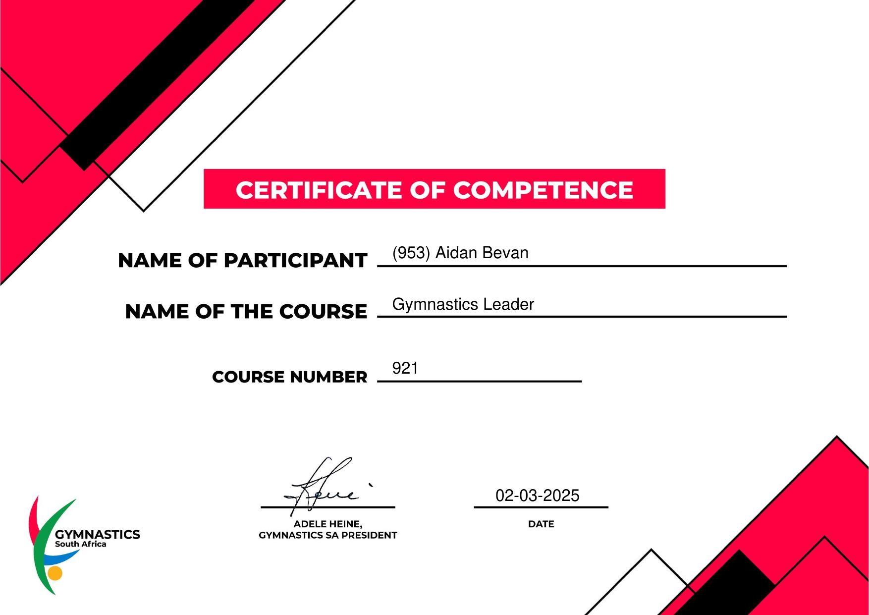 For over six years, Aidan has been an integral member of the Pinetown Gymnastics “Wild Dogs” Club, where he has competed at both provincial and national levels across South Africa. This competitive experience has given him invaluable insights into the dedication, discipline, and technical precision required to excel in gymnastics.